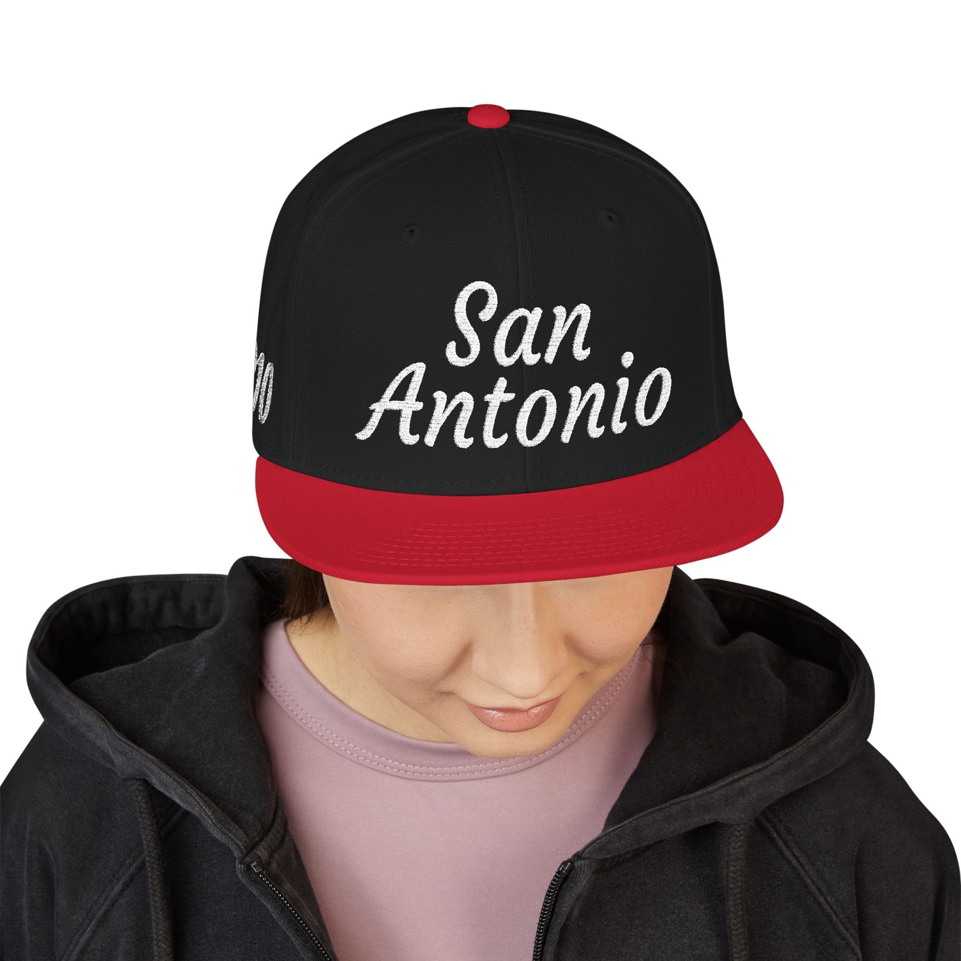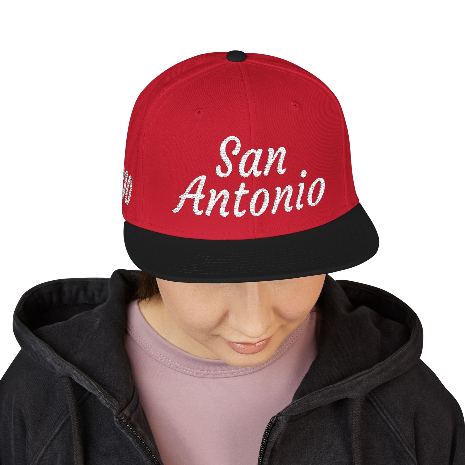 This structured snapback brings old-school street attitude with a refined embroidered finish. The high-profile, six-panel crown holds its shape while crisp red embroidery and a contrasting black visor add a bold, low-key look. It sits comfortably on 22"–24" heads thanks to the adjustable snap closure, and the gray undervisor keeps glare down while preserving that authentic flat-brim silhouette. Wear it tilted back for skate sessions, squared up for nights out, or paired with a coach jacket for neighborhood hangs—it's designed to feel lived-in from the first wear and to keep a clean, consistent presence in your rotation.